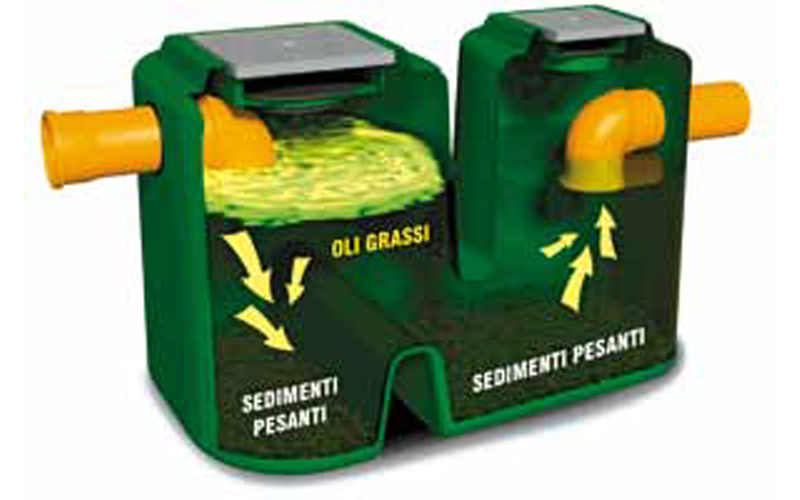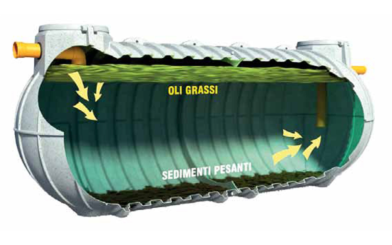 All’interno dei manufatti, suddivisi in varie camere di trattamento/separazione, defluiscono le acque da depurare; la prima camera ha lo scopo di smorzare le turbolenze provocate dal flusso entrante e ripartire lo stesso lungo tutto lo sviluppo trasversale della vasca, inoltre costituisce fase di sedimentazione delle particelle solide presenti nelle acque.