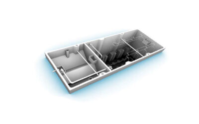 Descrizione: gli IMPIANTI di DEPURAZIONE MBR (Membrane Bio-Reactor) monoblocco prefabbricati in C.A.V. vengono realizzati con calcestruzzo confezionato con CEMENTO PORTLAND tipo I 52,5R avente ALTA RESISTENZA ai SOLFATI (ARS), FIBRORINFORZATO con fibre sintetiche antifessurazione, avente resistenza a compressione C40/50 (Rck ≥ 500 Kg./cmq.), classi di esposizione XC4, XS2/XD2, XF3, XA2, dotata di armature interne d’acciaio ad aderenza migliorata tipo B450C controllate in stabilimento.