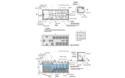L’impianto è composto da una vasca completa di comparto interno per l’ossidazione biologica e per la filtrazione finale, corredata di tutte le opere elettromeccaniche e le carpenterie quali: manicotti in PVC per ingresso e scarico, deflettori in acciaio INOX AISI 304, setti interni in c.a.v., soffiante per la produzione dell’aria compressa, pannello di controllo locale, diffusori a disco con membrana in EPDM, moduli di ultrafiltrazione a membrana, elettropompe sommergibili di controllo, necessarie a realizzare i singoli comparti di trattamento.