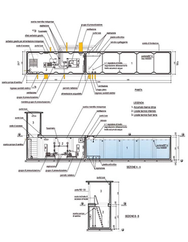 – vasca/vasche per riserva idrica – locale tecnico – n.ro 1 elettropompa + n.ro 1 motopompa diesel + pilota;